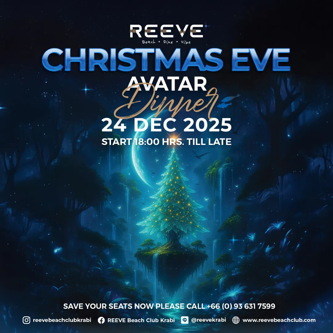 Celebrate Christmas in Krabi with beachfront parties, festive dining, and glowing Avatar-inspired vibes at Reeve Beach Club, 24–26 December 2025.