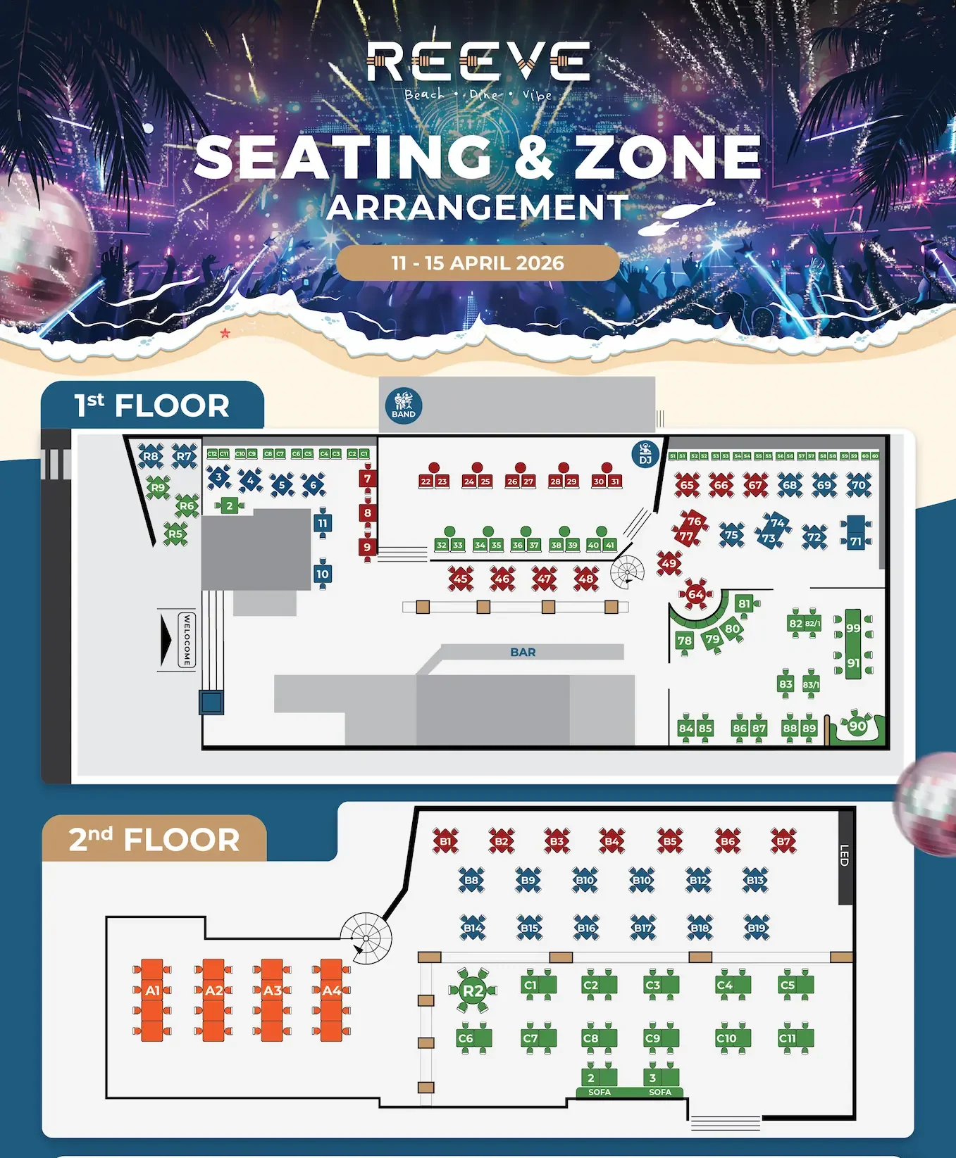 For guests who prefer a more comfortable party experience, table reservations with minimum spend packages are available.