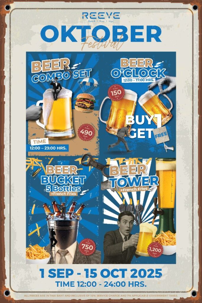 Step into a world of golden brews, retro beats, and seaside vibes at REEVE Beach Club Krabi, the iconic nightlife destination in Ao Nang. This September & October, we’re bringing you an Oktoberfest in Krabi like no other — with endless beer promotions, live DJs, fiery performances, and a splash of 70s–80s retro energy that will keep you dancing by the beach.