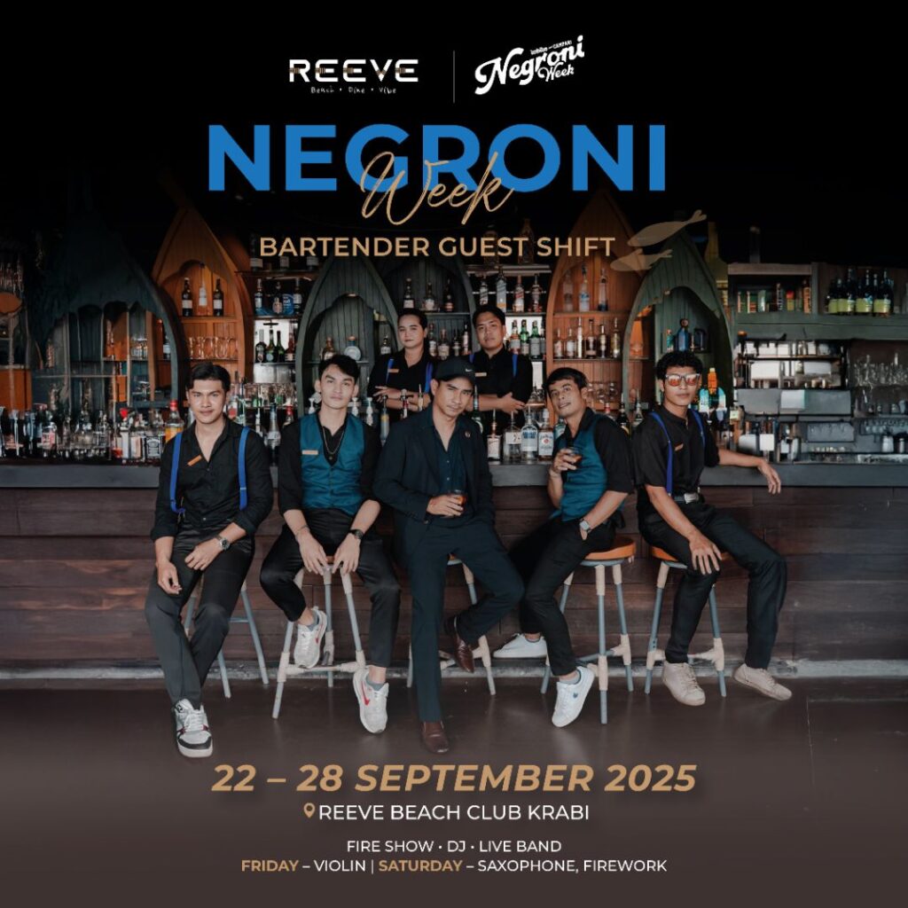 Celebrate one of the world’s most iconic cocktails in style at Reeve Beach Club Krabi, a premier beachfront restaurant in Krabi. For one unforgettable week, our bar transforms into a Negroni lover’s paradise with seven guest bartenders, each bringing their own creative twist to this timeless drink.